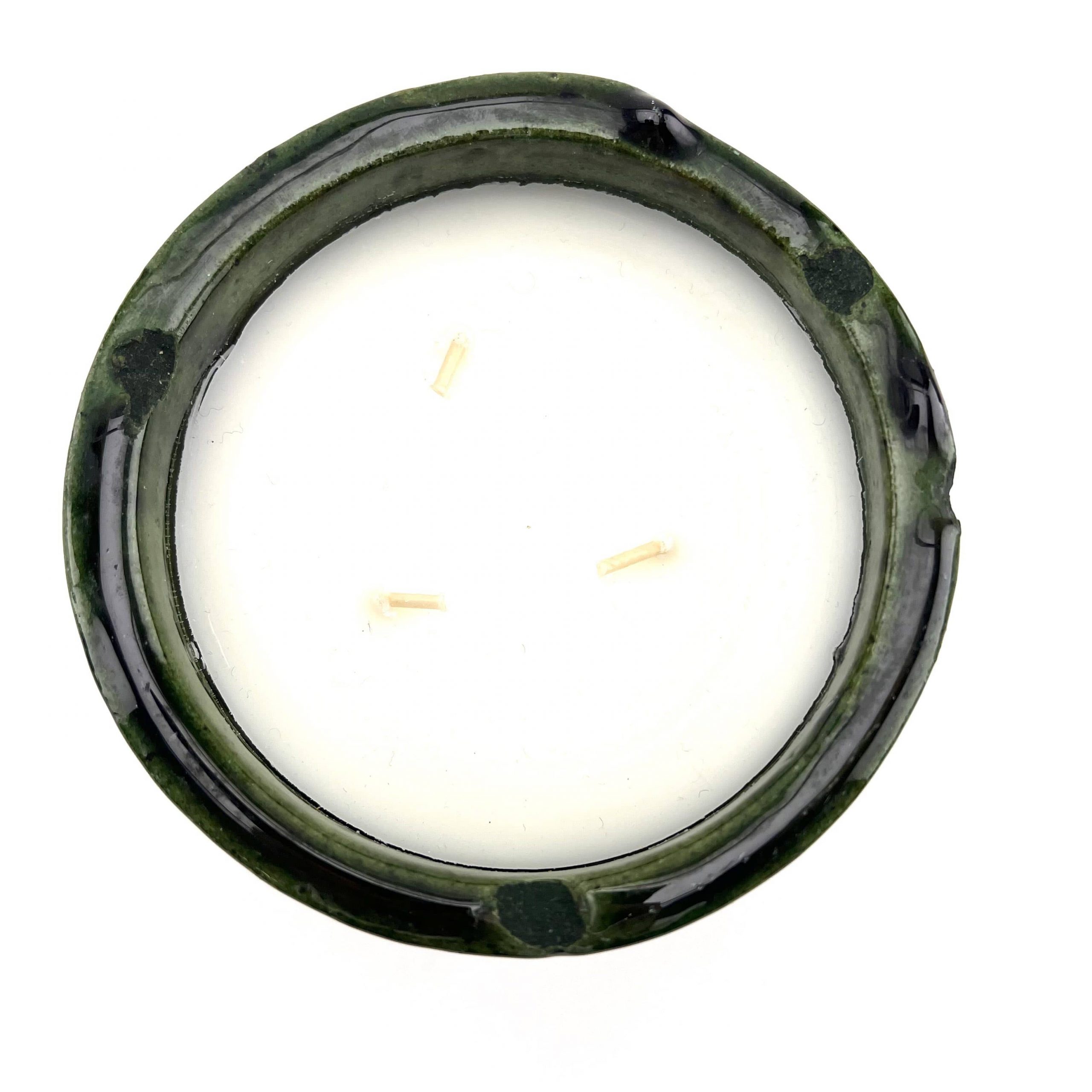 Die Duftkerze „Tamegroute Verte“ ehrt das traditionelle Töpferhandwerk des marokkanischen Südens; ihre Unregelmäßigkeiten und dunklen Spuren zeugen von authentischer Handarbeit und machen jedes Stück einzigartig. Der Duft von Minze & Tee verströmt eine belebende, zugleich beruhigende Frische wie bei marokkanischen Teeritualen.