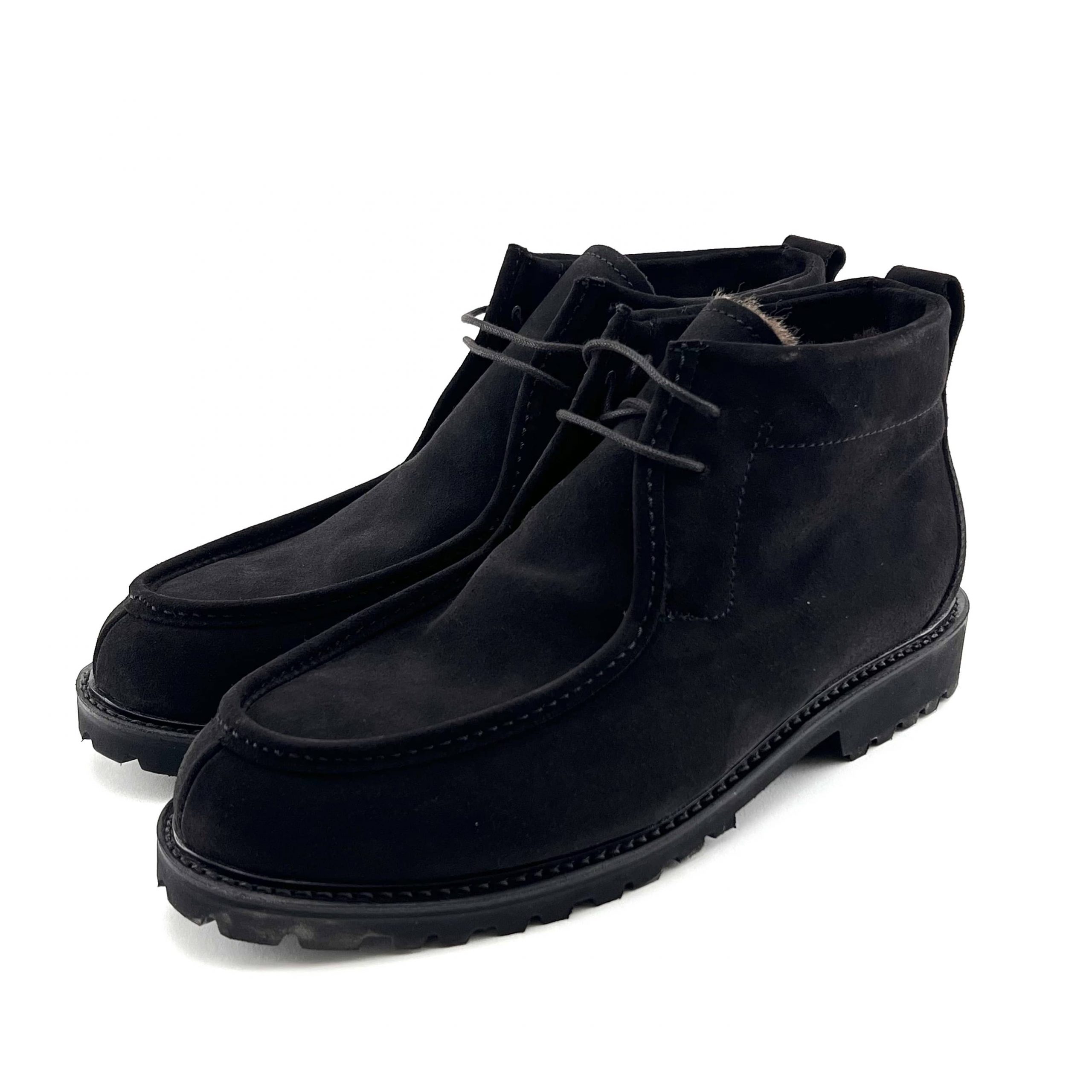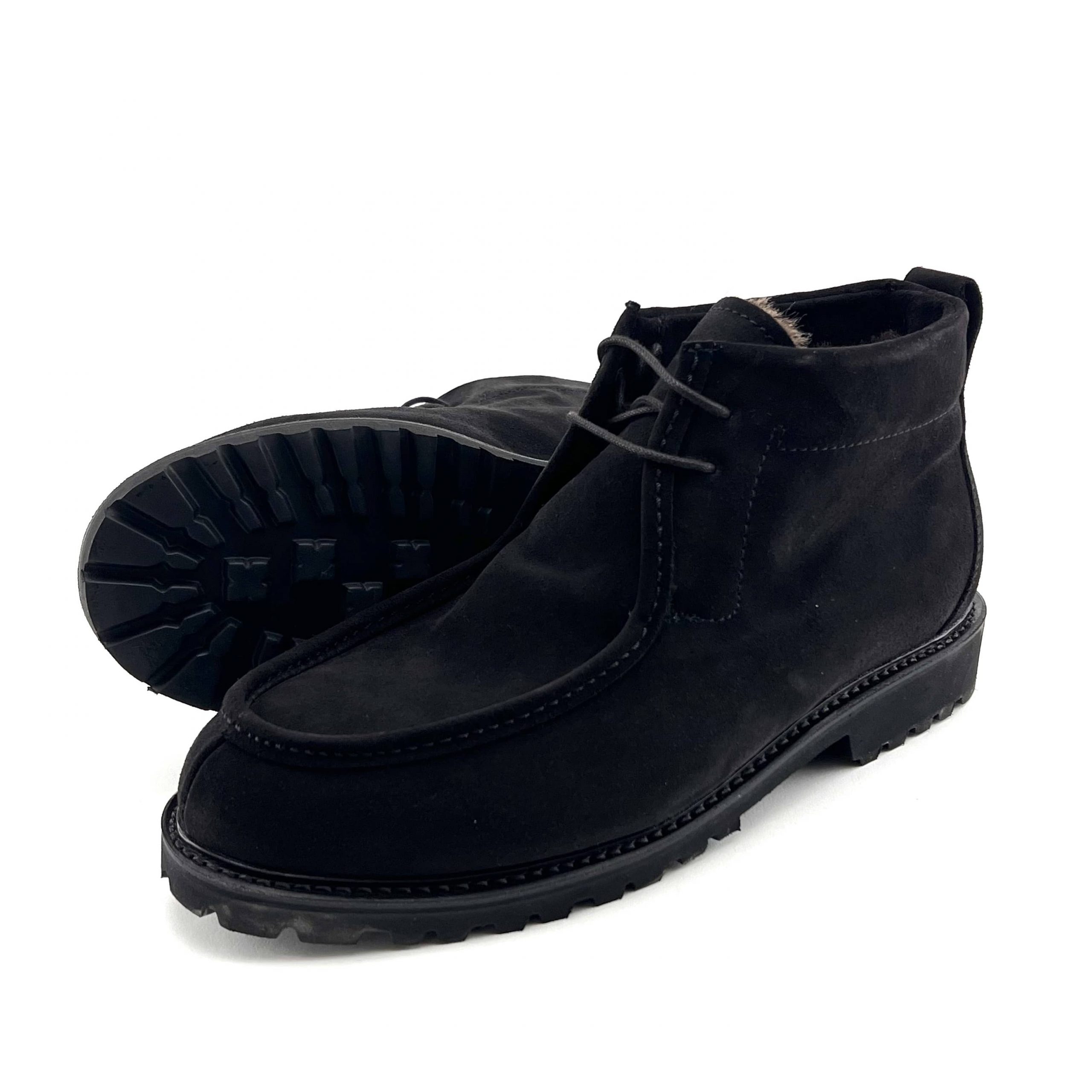 Sportlich-eleganter Schnürschuh aus hydrophobiertem Veloursleder Mit warmem Lammfellfutter und leichter Profilsohle – ideal für lange Spaziergänge in der kalten Jahreszeit.